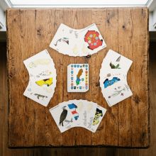 Landskapsspelet är ett roligt och lärorikt kvartettspel för hela familjen – perfekt för den som vill bli en riktig fena på svensk geografi. Visste du att kronhjorten är landskapsdjur i Skåne, att vit näckros är Södermanlands landskapsblomma – eller att Ångermanlands landskapsdjur är en bäver? Med 101 vackert illustrerade kort samlar du kompletta fyror av landskapsdjur, landskapsblomma, landskapsfågel och landskapsfisk för var och ett av Sveriges 25 landskap.